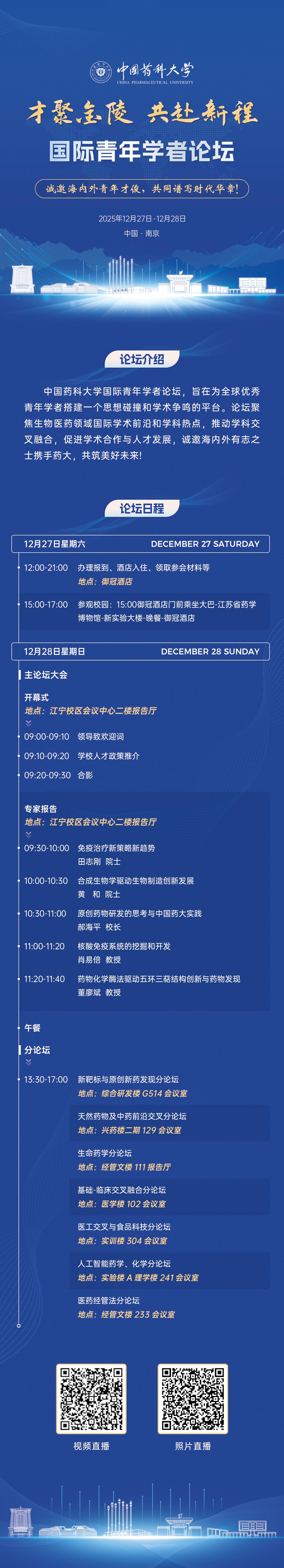 【论坛议程】中国药科大学2025国际青年学者论坛即将开幕
